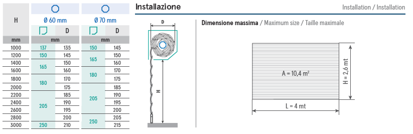 Dimensione massima e diametro avvolgimento