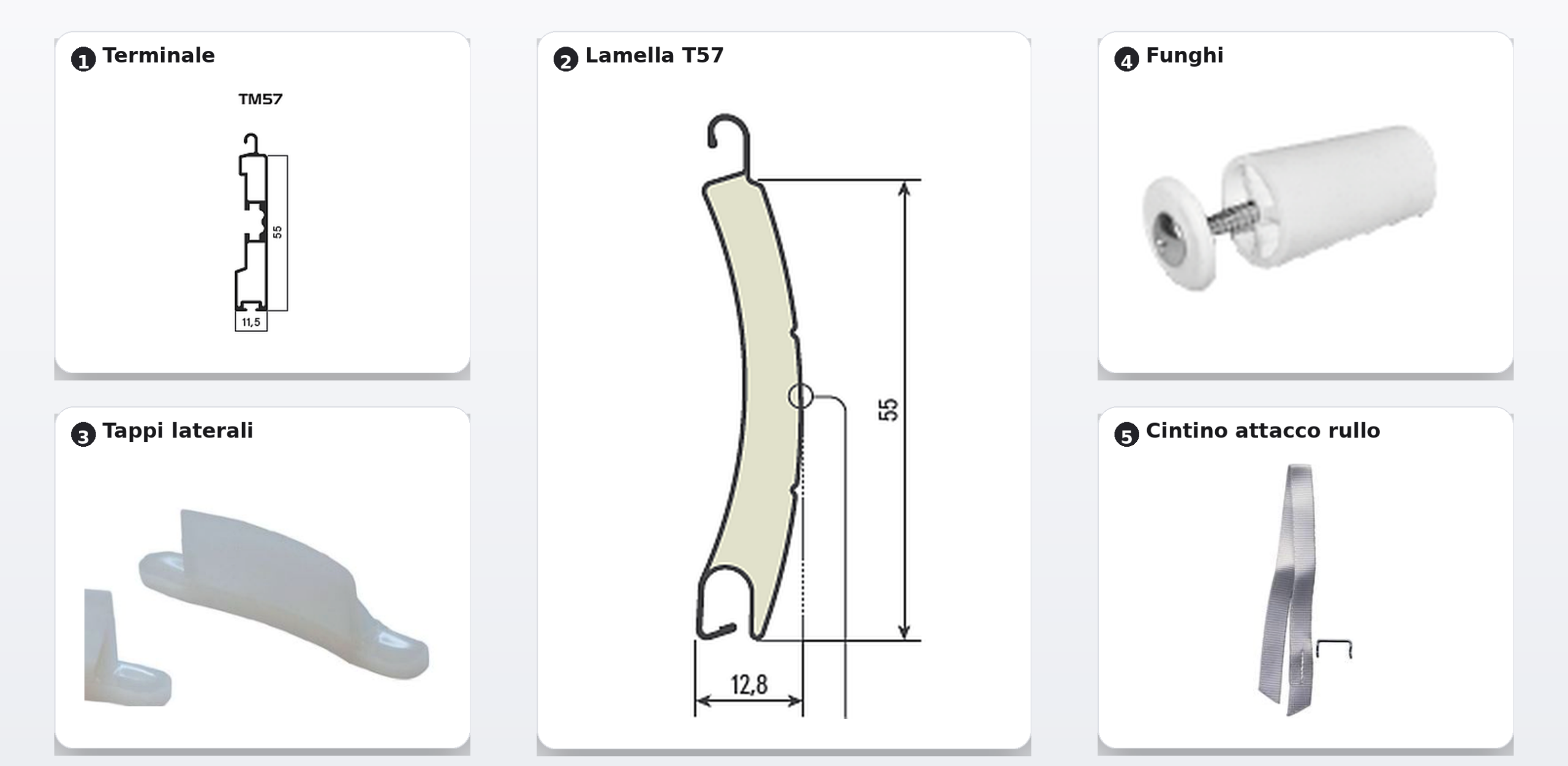 Terminale TM57 in alluminio, progettato per garantire una chiusura stabile e uno scorrimento fluido nelle guide. Completo di predisposizione per tappi e accessori, riduce rumori e vibrazioni migliorando la tenuta nel tempo.